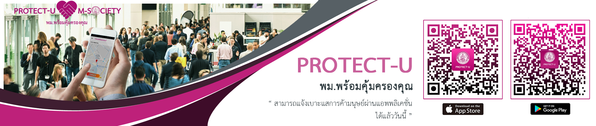 กระทรวงการพัฒนาสังคมและความมั่นคงของมนุษย์ (พม.) ได้จัดทำ Mobile Application “Protect-U” เพื่อเพิ่มช่องทางสำหรับผู้เสียหายจากการค้ามนุษย์ ได้เข้าถึงบริการการช่วยเหลือคุ้มครอง โดยผู้เสียหายจากการค้ามนุษย์สามารถแจ้งข้อมูลเพื่อขอรับการช่วยเหลือไม่ว่าจะอยู่ที่ไหนผ่านการแจ้งรายละเอียดข้อมูลหรือการแจ้งพิกัดบนแผนที่ที่ตนเองอยู่ในขณะนั้นให้เจ้าหน้าที่กระทรวง พม. รับทราบข้อมูล เพื่อประสานหน่วยงานที่เกี่ยวข้องในพื้นที่ใกล้เคียงให้การช่วยเหลือโดยเร็วที่สุด ซึ่ง Application “Protect U” สามารถกำหนดพิกัดแผนที่บน Google Map โดยข้อมูลของผู้แจ้งจะถูกเก็บรักษาอย่างปลอดภัย อีกทั้งยังเป็นเครื่องมือสำหรับบุคคลอื่นที่พบเห็นเหตุค้ามนุษย์สามารถแจ้งข้อมูลผ่านแอปพลิเคชันดังกล่าวได้ด้วยเช่นเ …