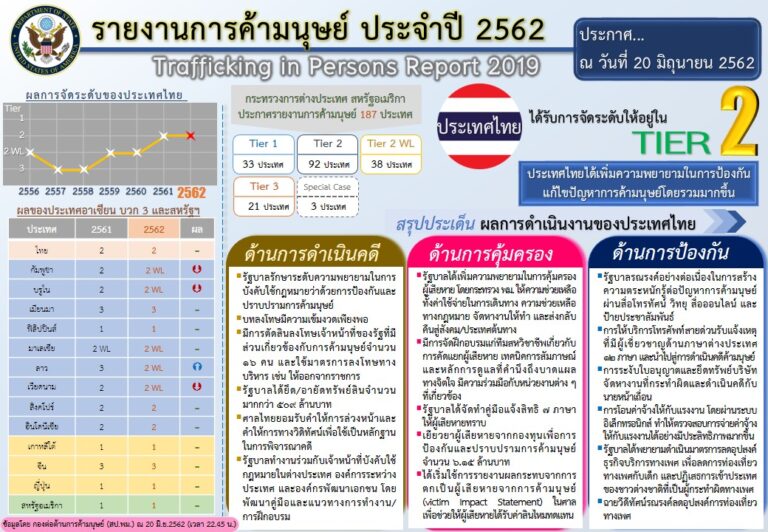 ประกาศ ณ วันที่ 19 กรกฎาคม 2565 ประเทศไทย ได้รับการจัดระดับให้อยู่ใน TIER 2 เหตุผลที่ถูกยกระดับขึ้น ...